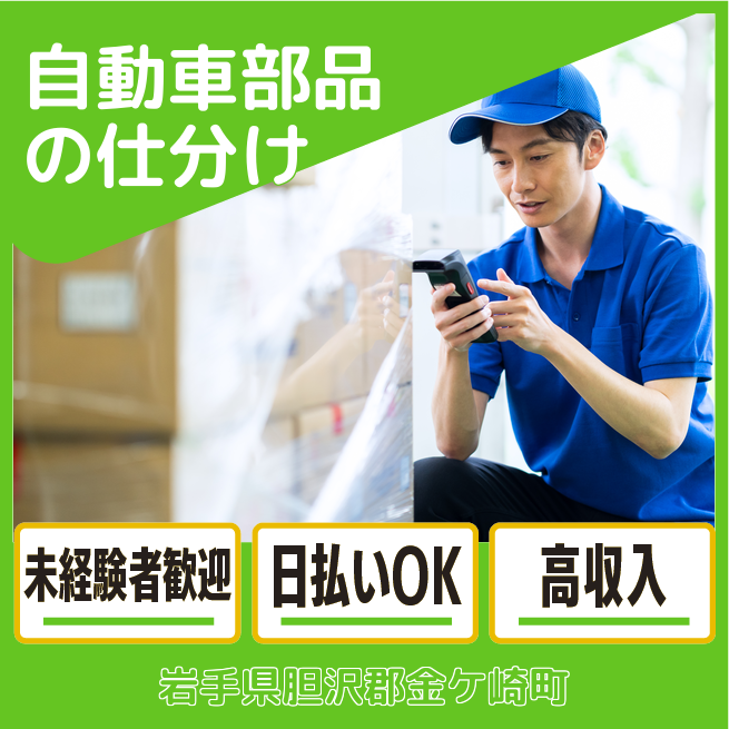 給与詳細 月収例 232,700円 日給例 10,400円 勤務地 岩手県胆沢郡金ケ崎町 仕事内容 【仕分け作業】