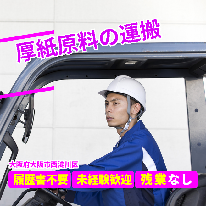 - 厚紙の原料をフォークリフトで運搬し、投入する作業(二交代制)