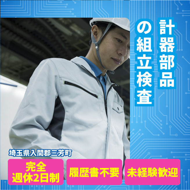 給与詳細 月収例 263,250円 日給例 10,800円 勤務地 埼玉県入間郡三芳町 仕事内容 電子計器の組立て・検査