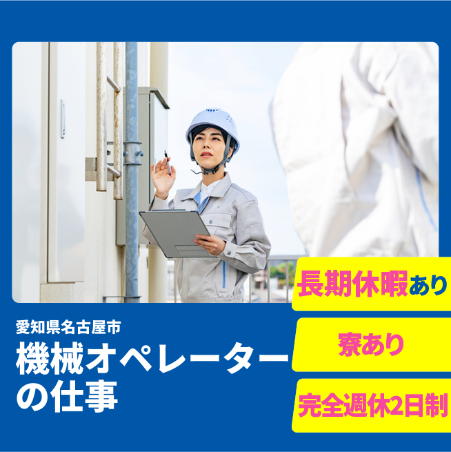 給与詳細 月収例 240,000円 日給例 12,000円 勤務地 愛知県名古屋市熱田区 仕事内容 工場で行う機械加工オペレーター(高収入)