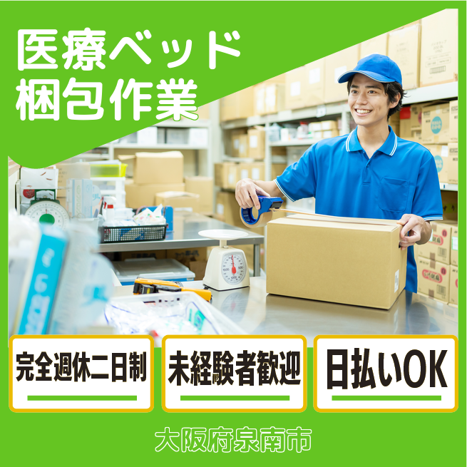医療用ベッドなどの製品を電動工具を使ってダンボールに梱包する作業です。