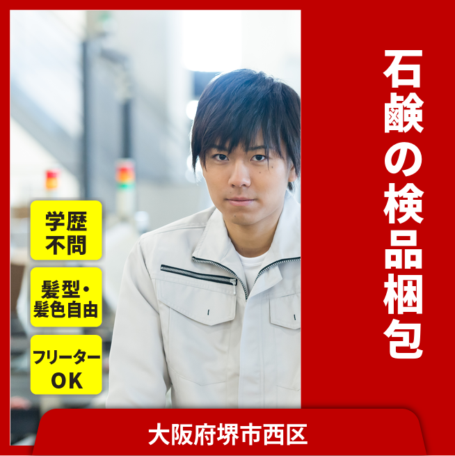 給与詳細 月収例 192,000円 時給例 1,200円 勤務地 大阪府堺市西区 仕事内容 \石鹸づくりのライン作業スタッフ募集!/