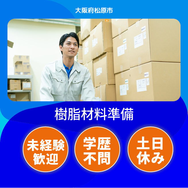 樹脂チップの材料準備と梱包補助を担当する仕事です。