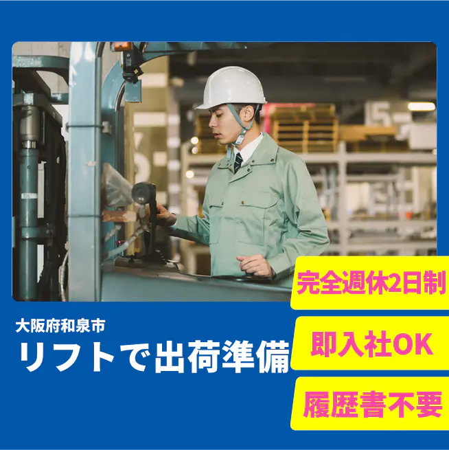 給与詳細 月収例 224,000円 日給例 11,200円 勤務地 大阪府和泉市 仕事内容 【業務内容】