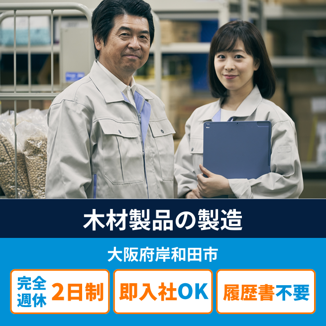 時給例:1430円 交通費 支給あり 応募の流れ 本ページ内<応募する>ボタンより、必要項目をご入力の上、ご応募ください。 勤務地 【勤務地】大阪府岸和田市木材町 勤務時間 【勤務地】?7:55~16:10