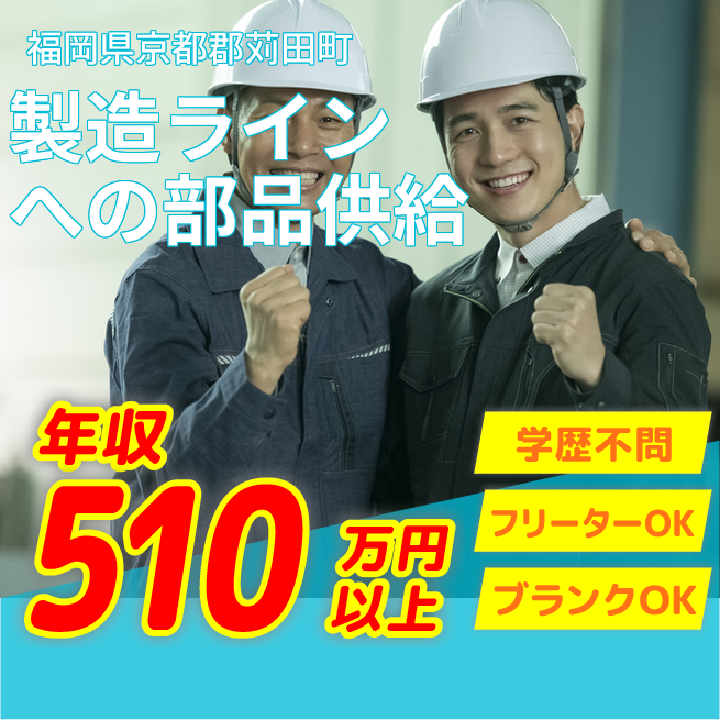 勤務地 福岡県京都郡苅田町 仕事内容 大手自動車工場での各種ライン作業になります。