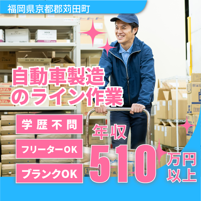 勤務地 福岡県京都郡苅田町 仕事内容 大手自動車工場での製造ラインへの部品供給・フォークリフト作業