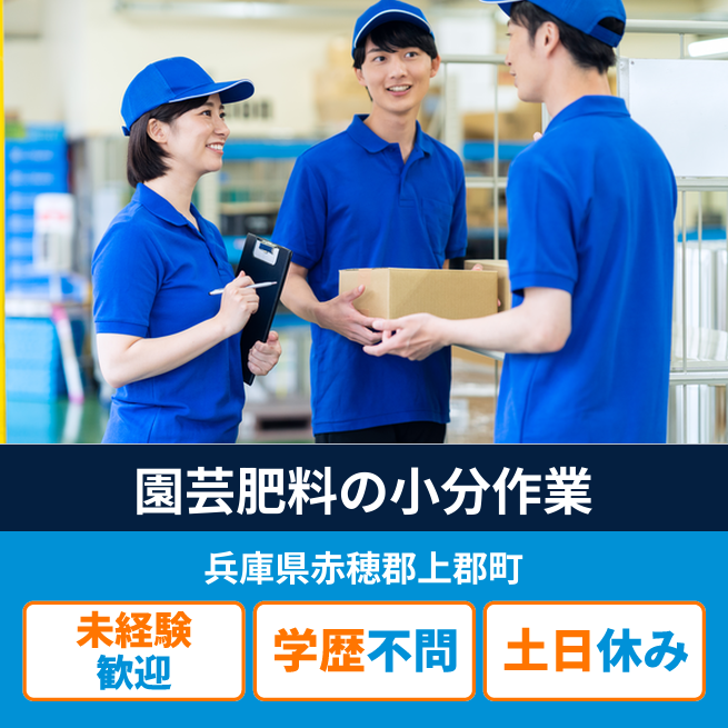 園芸肥料の小分け・梱包と荷物の運搬作業