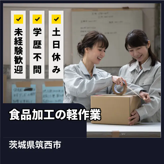 食品加工工場での検査、検品、機械操作、原料投入、洗浄、梱包作業を行う業務です。