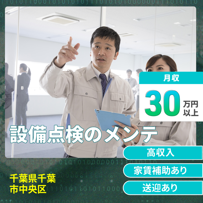 給与詳細 月収例 270,000円 時給例 1,687円 勤務地 千葉県千葉市中央区 仕事内容 ウィルオブ・ワークの正社員として取引先の設備・機械メンテナンスメーカーで勤務いただきます。