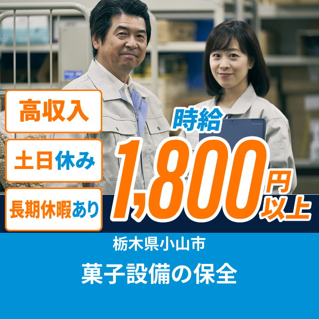 給与詳細 月収例 290,000円 時給例 1,812円 勤務地 栃木県小山市 仕事内容 ウィルオブ・ワークの正社員として菓子製造工場で勤務いただきます。