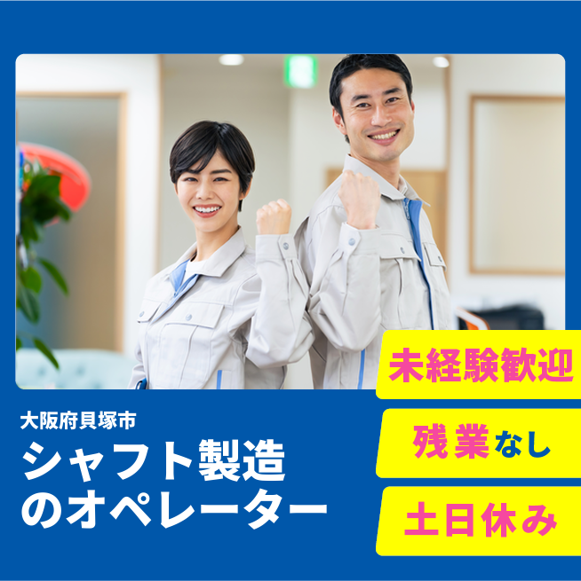 配属後…24万円 資格取得後…25万円 交通費 支給あり 応募の流れ 本ページ内<応募する>ボタンより、必要項目をご入力の上、ご応募ください。 勤務地 【勤務地】大阪府貝塚市- 勤務時間 【勤務地】日勤