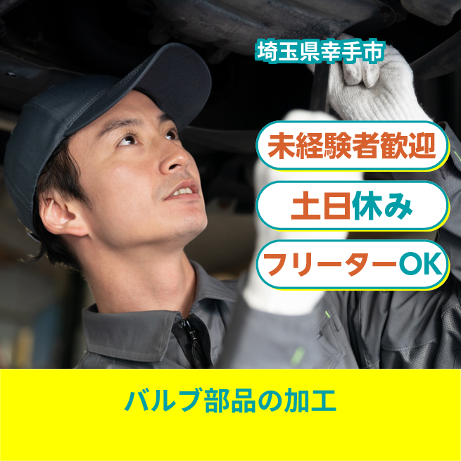 給与詳細 月収例 240,000円 日給例 12,000円 勤務地 埼玉県幸手市 仕事内容 ウィルオブ・ワークの正社員としてのバルブ製造工場で勤務いただきます。