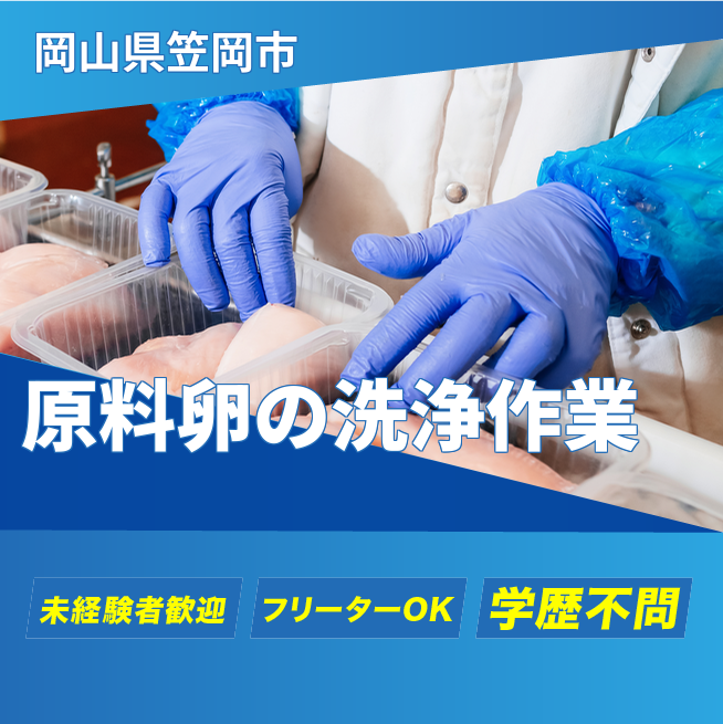 食品製造工場で、原料卵の処理と液卵の包装を担当します。