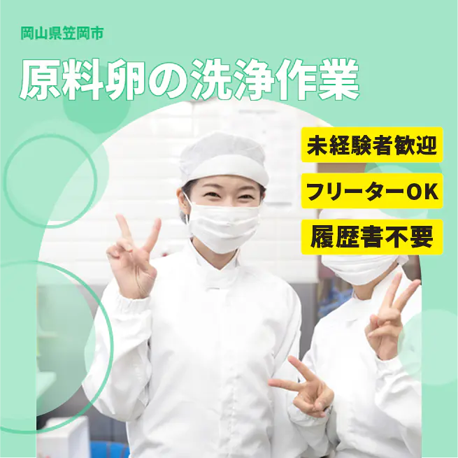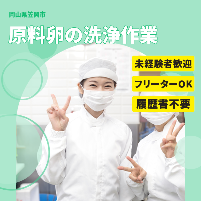 食品製造工場で、原料卵の処理と液卵の包装を担当します。