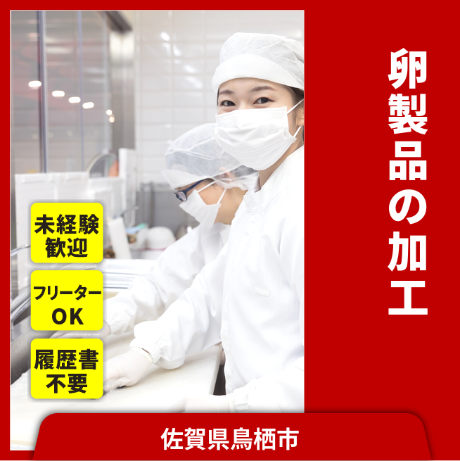 食品製造工場での原料卵の処理および液卵の包装作業を行います。