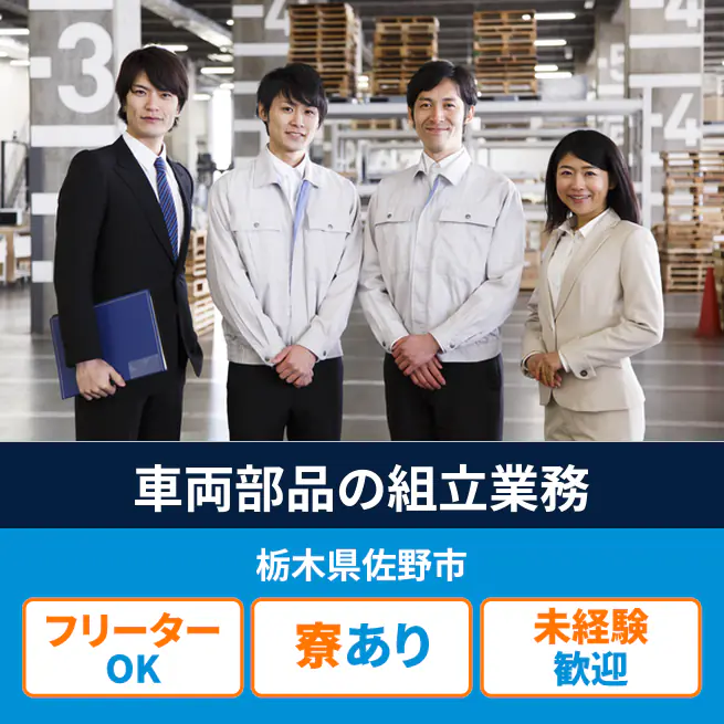 28.8~30.7万円 交通費 支給あり 応募の流れ 本ページ内<応募する>ボタンより、必要項目をご入力の上、ご応募ください。 勤務地 【勤務地】栃木県佐野市- 勤務時間 【勤務地】日勤