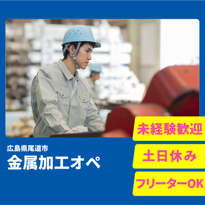 給与詳細 月収例 195,000円 時給例 1,218円 勤務地 広島県尾道市 仕事内容 ウィルオブ・ワークの正社員として取引先の金属加工工場で勤務いただきます。