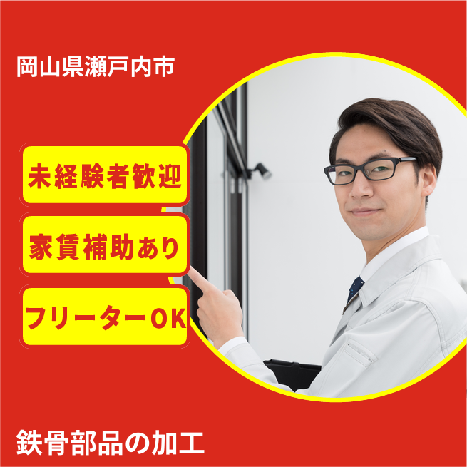 20~21.6万円 交通費 支給あり 応募の流れ 本ページ内<応募する>ボタンより、必要項目をご入力の上、ご応募ください。 勤務地 【勤務地】岡山県瀬戸内市- 勤務時間 【勤務地】日勤