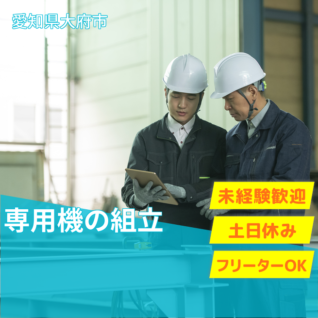 給与詳細 月収例 205,000円 日給例 10,250円 勤務地 愛知県大府市 仕事内容 ウィルオブ・ワークの正社員として取引先の専用機(製造用ロボット)製造工場で勤務いただきます。