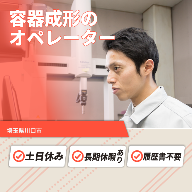 残業時間:0~10時間 必須資格 ・射出成型のオペーレーター経験