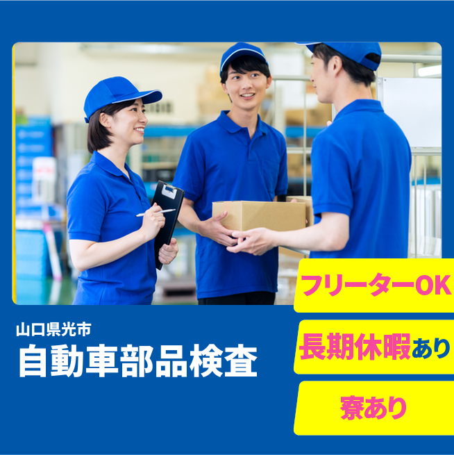 26.6~28.4万円 交通費 支給あり 応募の流れ 本ページ内<応募する>ボタンより、必要項目をご入力の上、ご応募ください。 勤務地 【勤務地】山口県光市- 勤務時間 【勤務地】2交替