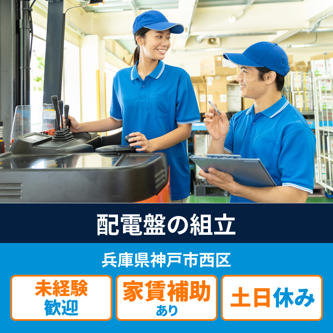 給与詳細 月収例 210,000円 日給例 10,500円 勤務地 兵庫県神戸市西区 仕事内容 ウィルオブ・ワークの正社員として取引先の配電盤製造工場で勤務いただきます。