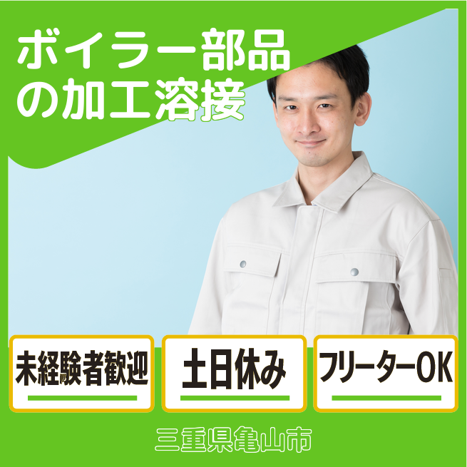 給与詳細 月収例 215,000円 日給例 10,750円 勤務地 三重県亀山市 仕事内容 ウィルオブ・ワークの正社員として取引先の水管式ボイラーの製造工場で勤務いただきます。