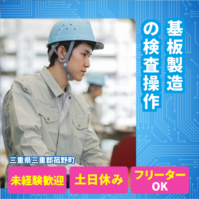 給与詳細 月収例 215,000円 日給例 10,750円 勤務地 三重県三重郡菰野町 仕事内容 ウィルオブ・ワークの正社員として取引先の電子基板の製造工場で勤務いただきます。