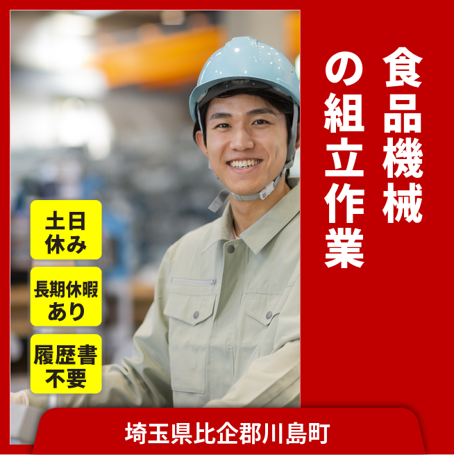 26.9~28.7万円 交通費 支給あり 応募の流れ 本ページ内<応募する>ボタンより、必要項目をご入力の上、ご応募ください。 勤務地 【勤務地】埼玉県比企郡川島町- 勤務時間 【勤務地】日勤