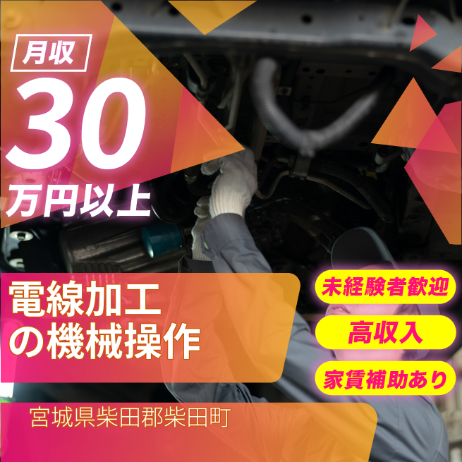 給与詳細 月収例 220,000円 日給例 11,000円 勤務地 宮城県柴田郡柴田町 仕事内容 ウィルオブ・ワークの正社員として、取引先の電線・ケーブル製造工場にて勤務いただきます。
