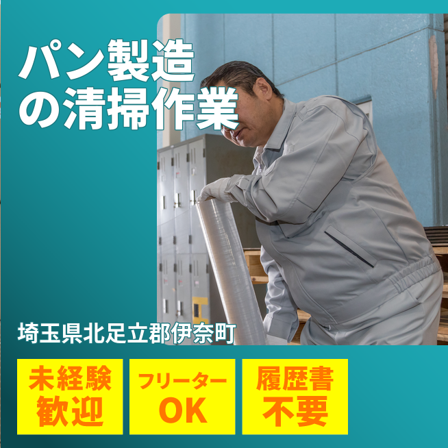 パン工場での清掃および関連業務を担当します。