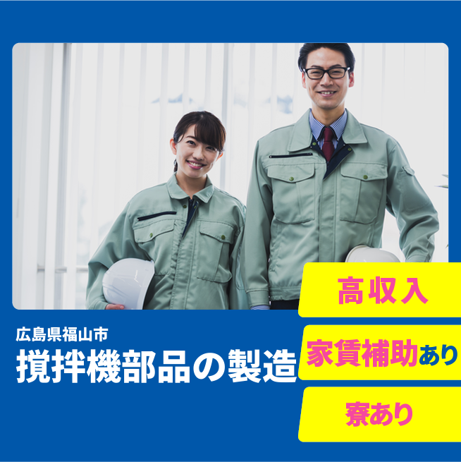 25.9~27.8万円 交通費 支給あり 応募の流れ 本ページ内<応募する>ボタンより、必要項目をご入力の上、ご応募ください。 勤務地 【勤務地】広島県福山市- 勤務時間 【勤務地】日勤