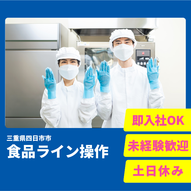 給与詳細 月収例 240,000円 日給例 12,000円 勤務地 三重県四日市市 仕事内容 ウィルオブ・ワークの正社員として味の素グループの食品工場で勤務いただきます。