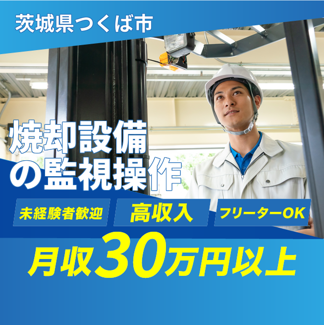 給与詳細 月収例 240,000円 日給例 12,000円 勤務地 茨城県つくば市 仕事内容 ウィルオブ・ワークの正社員として取引先の焼却施設にて就業していただきます。