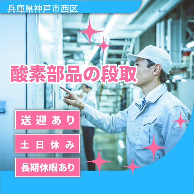 29.2~31.3万円 交通費 支給あり 応募の流れ 本ページ内<応募する>ボタンより、必要項目をご入力の上、ご応募ください。 勤務地 【勤務地】兵庫県神戸市西区- 勤務時間 【勤務地】日勤