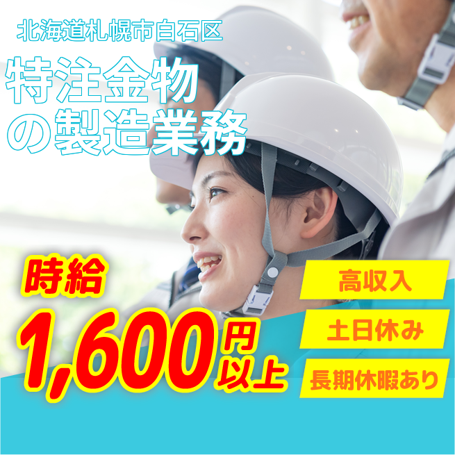 給与詳細 月収例 270,000円 時給例 1,687円 勤務地 北海道札幌市白石区 仕事内容 【業務内容】
