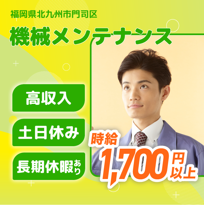 残業時間:0~10時間 必須資格 ・機械保全、設備点検経験5年以上
