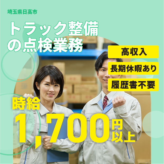 同社製のトラックの定期点検や不具合に関するメンテナンス業務、車検に関する作業を担当いただきます。