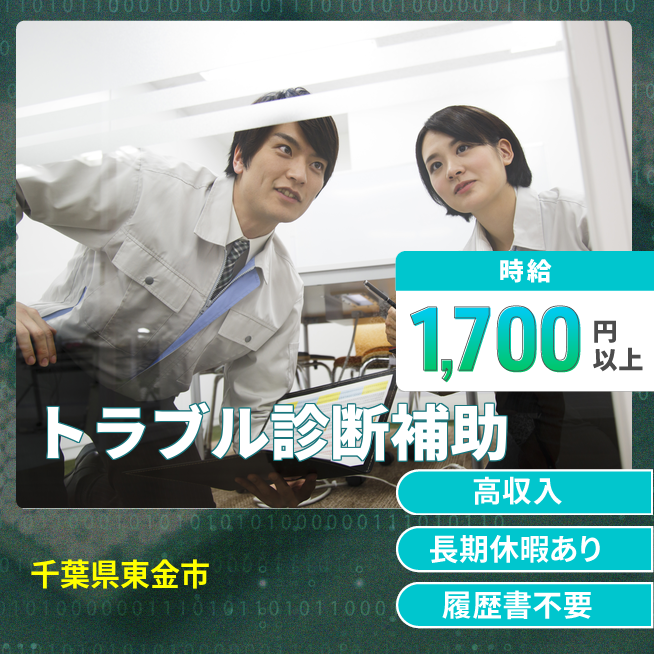 28~34.5万円 交通費 支給あり 応募の流れ 本ページ内<応募する>ボタンより、必要項目をご入力の上、ご応募ください。 勤務地 【勤務地】千葉県東金市- 勤務時間 【勤務地】日勤