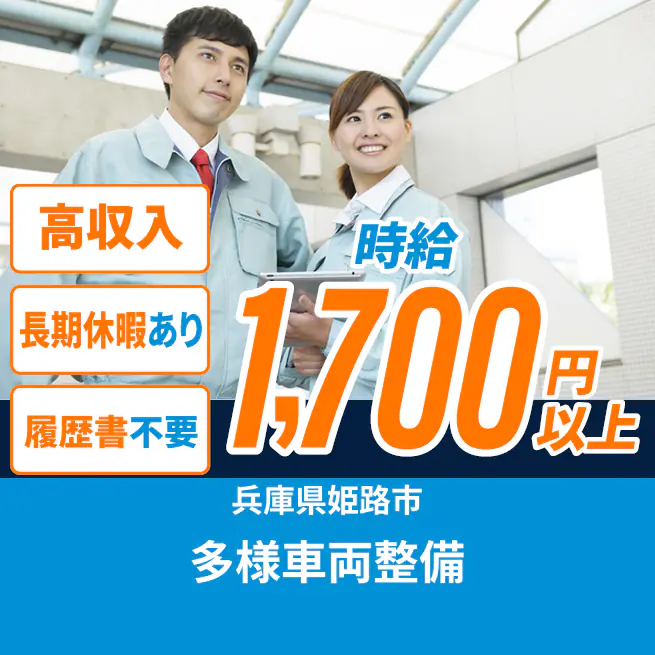 28.0~30.3万円 交通費 支給あり 応募の流れ 本ページ内<応募する>ボタンより、必要項目をご入力の上、ご応募ください。 勤務地 【勤務地】兵庫県姫路市- 勤務時間 【勤務地】日勤