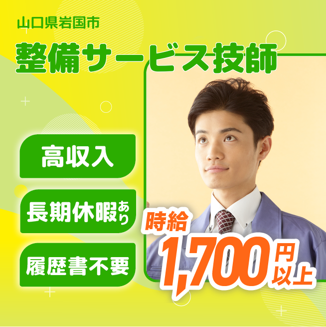 28~34.5万円 交通費 支給あり 応募の流れ 本ページ内<応募する>ボタンより、必要項目をご入力の上、ご応募ください。 勤務地 【勤務地】山口県岩国市- 勤務時間 【勤務地】日勤