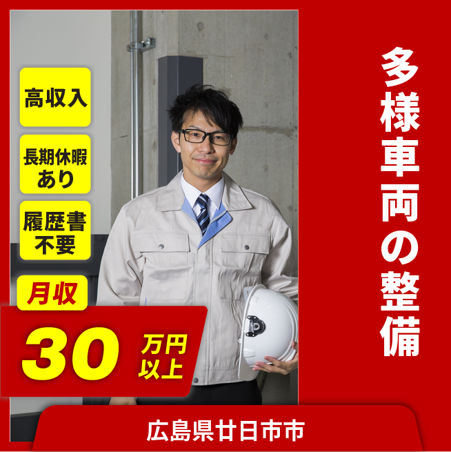 給与詳細 月収例 300,000円 時給例 1,875円 勤務地 広島県廿日市市 仕事内容 【業務内容】