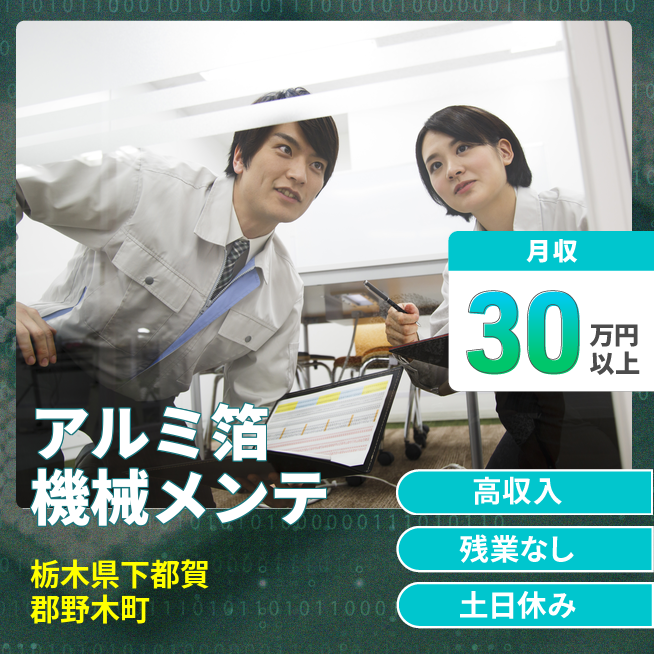 給与詳細 月収例 300,000円 時給例 1,875円 勤務地 栃木県下都賀郡野木町 仕事内容 【業務内容】
