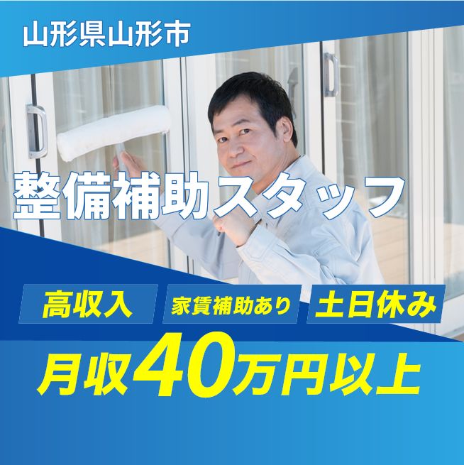 給与詳細 月収例 300,000円 時給例 1,875円 勤務地 山形県山形市 仕事内容 ウィルオブ・ワークの正社員として取引先の大手自動車整備工場にて勤務いただきます。