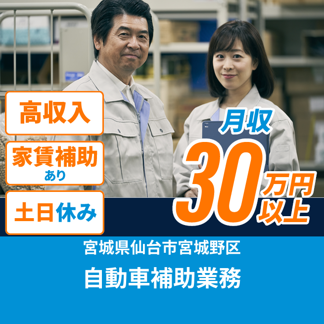 給与詳細 月収例 300,000円 時給例 1,875円 勤務地 宮城県仙台市宮城野区 仕事内容 【業務内容】