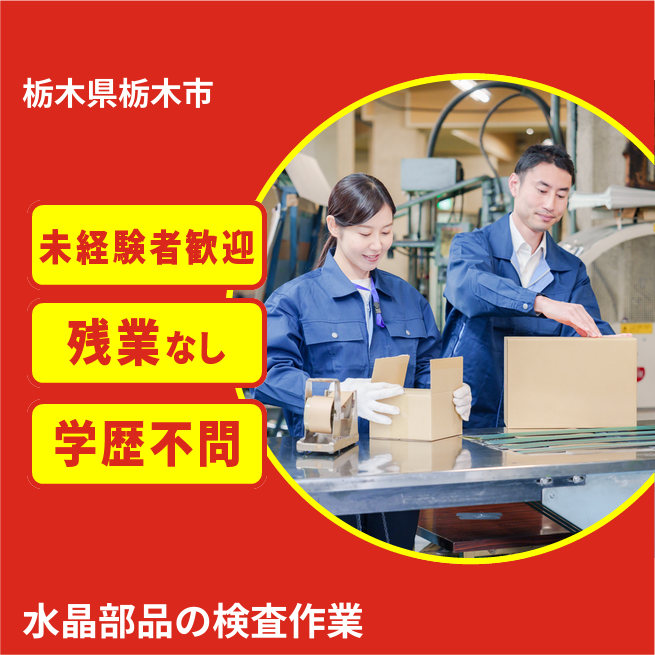 給与詳細 月収例 248,350円 日給例 10,000円 勤務地 栃木県栃木市 仕事内容 精密時計に使用される水晶振動子の製造になります。