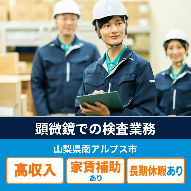 給与詳細 月収例 278,958円 日給例 11,250円 勤務地 山梨県南アルプス市 仕事内容 【業務内容】