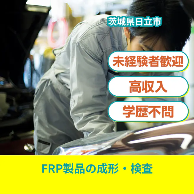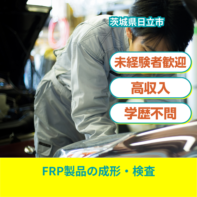 給与詳細 月収例 272,906円 日給例 12,000円 勤務地 茨城県日立市 仕事内容 FRP(繊維強化プラスチックス)製品の成型~塗装~接着までの一連の処理業務。