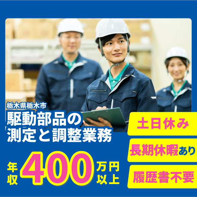 ◇20代~40代の男性が活躍中 福利厚生 ◆週払い・前払い制度あり◆交通費支給 ◆社会保険完備◆昇給有り◆有給休暇あり◆制服貸与◆社員食堂あり◆正社員登用制度あり◆駐車場完備◆車通勤OK◆分煙 公開日 2025年02月01日 世界をリードする自動車用駆動系部品供給業者でのお仕事!品質保証・品質検査業務での事務経験を活かして働ける昼勤のみ&土日休みのお仕事★長期休暇もありお休みもしっかりとれるのでプライベートも充実できる環境です!